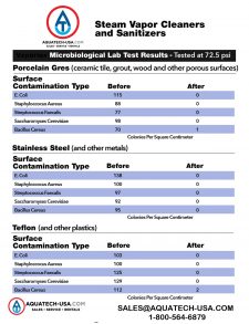 Aquatech-USA continues to innovate in vapor cleaning methods for the medical field. Several clinic and hospital environments have tested our Vapor Steam Cleaners, the results show Aquatech-USA can improve cleaning time, eliminate dangerous chemicals and bleaches, and deliver sanitized environments.